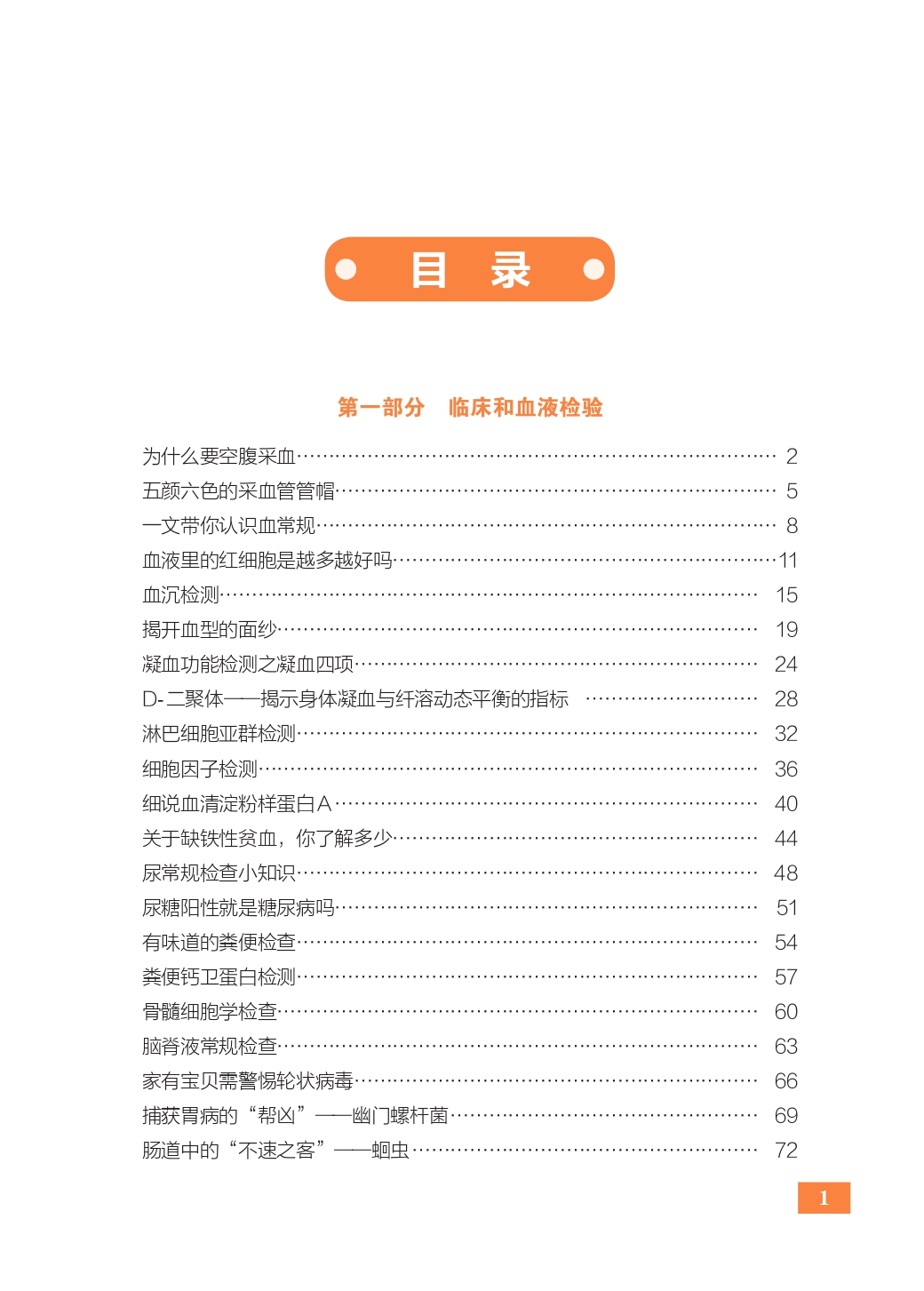 1.临床和血液检验 您将从"为什么要空腹采血"和"五颜六色的采血管管帽"这些基础常识开始,逐步深入了解血常规、尿常规和粪便检查。此外,本部分还详细介绍了评估炎症的血沉、监控凝血功能的凝血四项、骨髓细胞学检查、脑脊液检查等一系列关键项目,全方位洞察身体发出的求救信号。